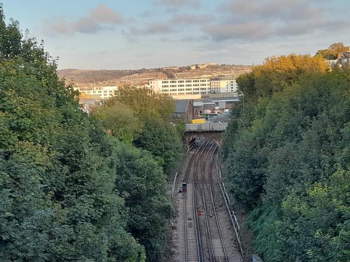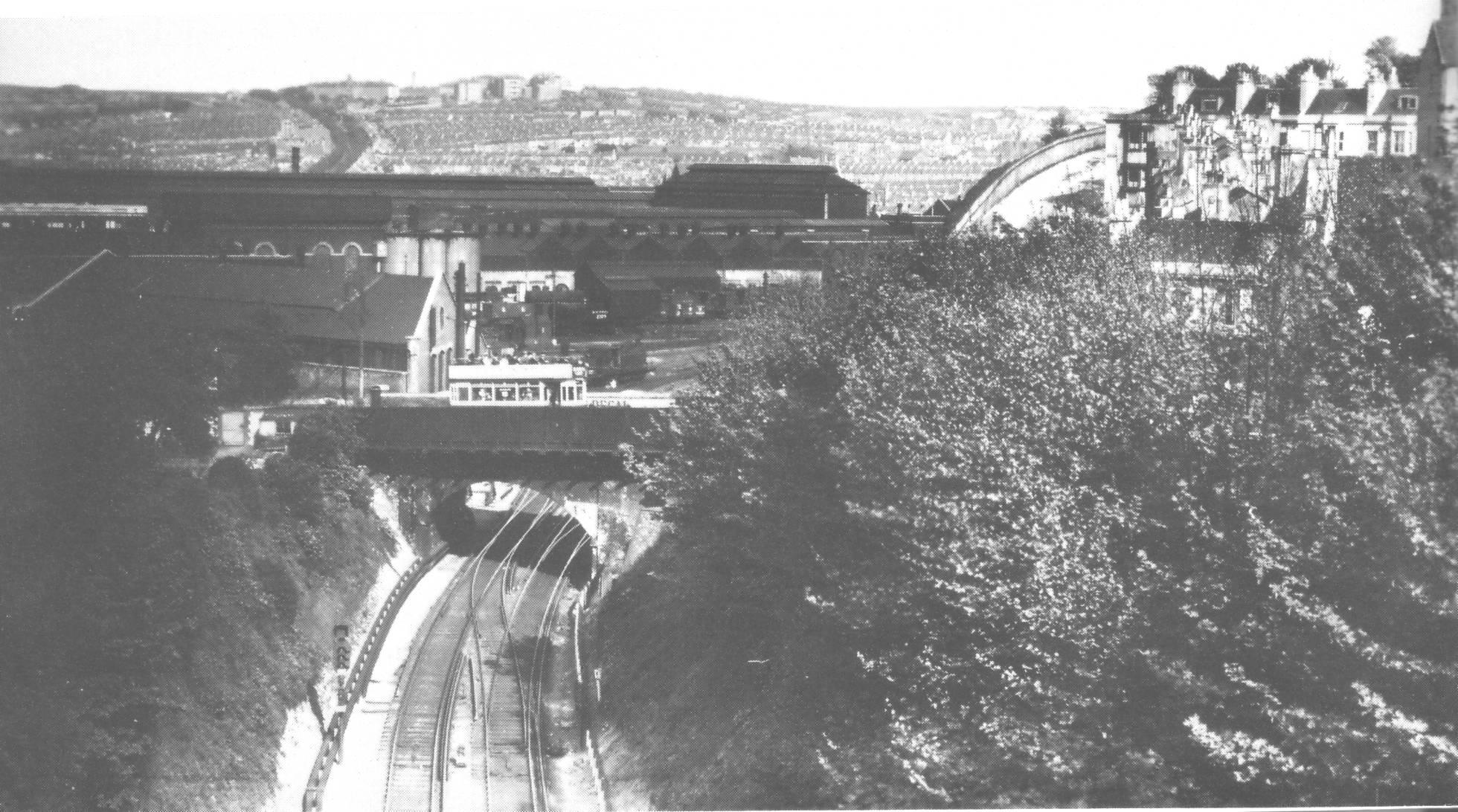 ABOVE: This view shows a wide shot of the whole Works building. While nothing remains of The Works in the present day, there are still hints of its existence. The majority of the brick piers which supported the extension remain, the bridge, embankment & also the retaining wall of the far end of the works foundations (immediately left of the bridge in the picture) all survive to date.