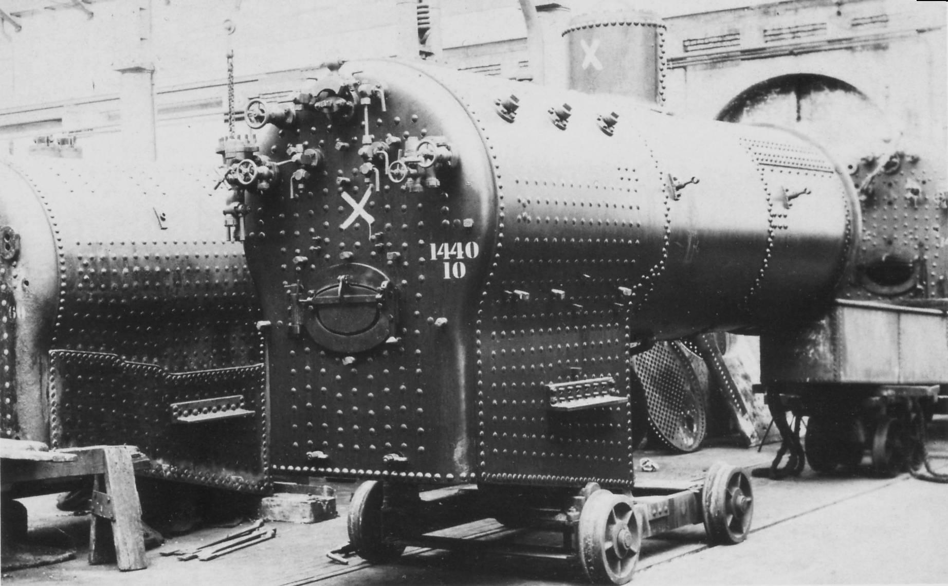 ABOVE: This view shows two boilers fresh from production in the Boiler Shop. This is one area of production that Mr. Stroudley had strong views on and forbid the use of machined rivets in boiler production. He insisted that all boilers be hand assembled and was a firm invigilator when it came to precision work and attention to detail. Image owned by The Madgewick Collection / Ian Allen Publishing.
