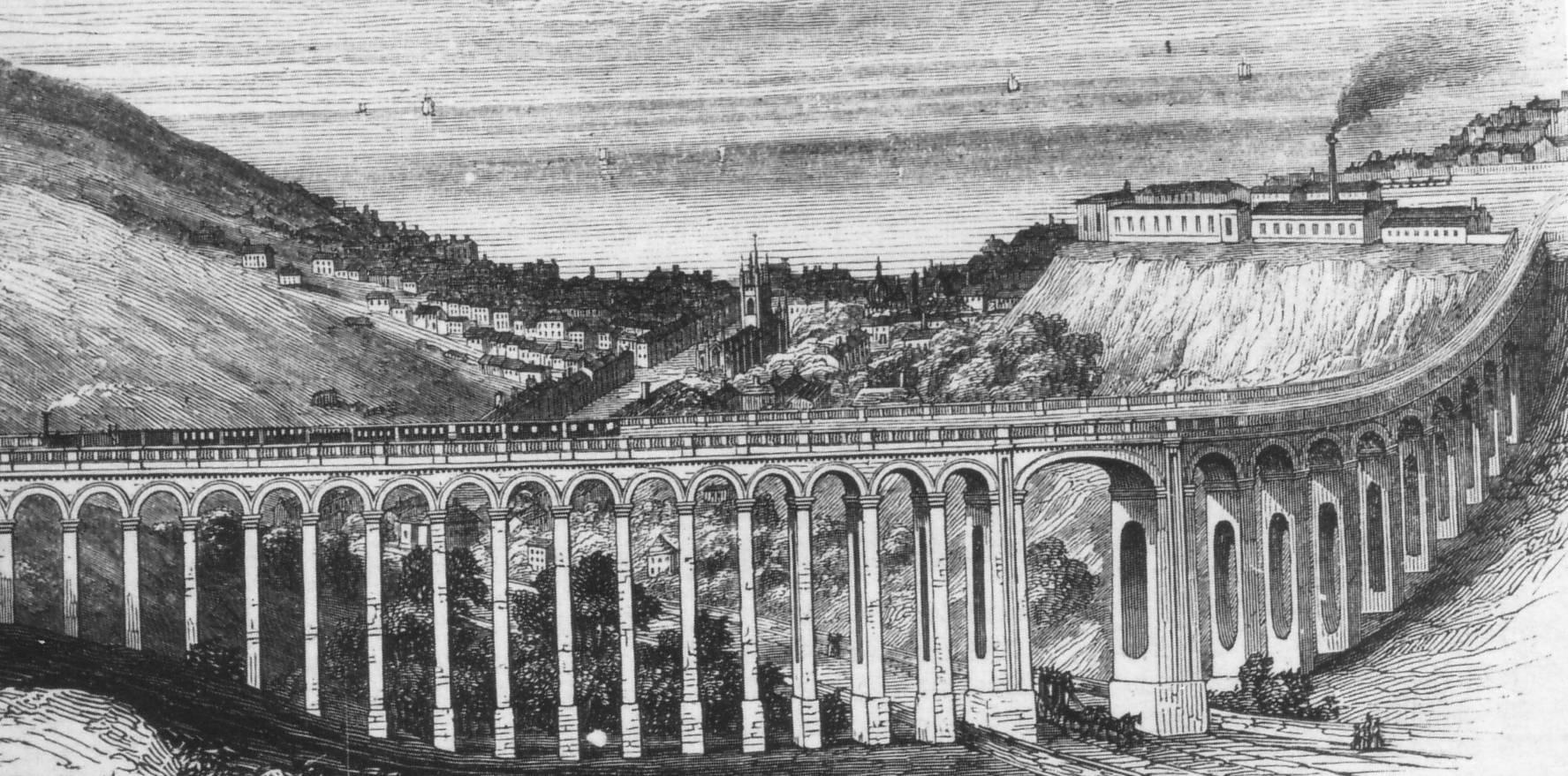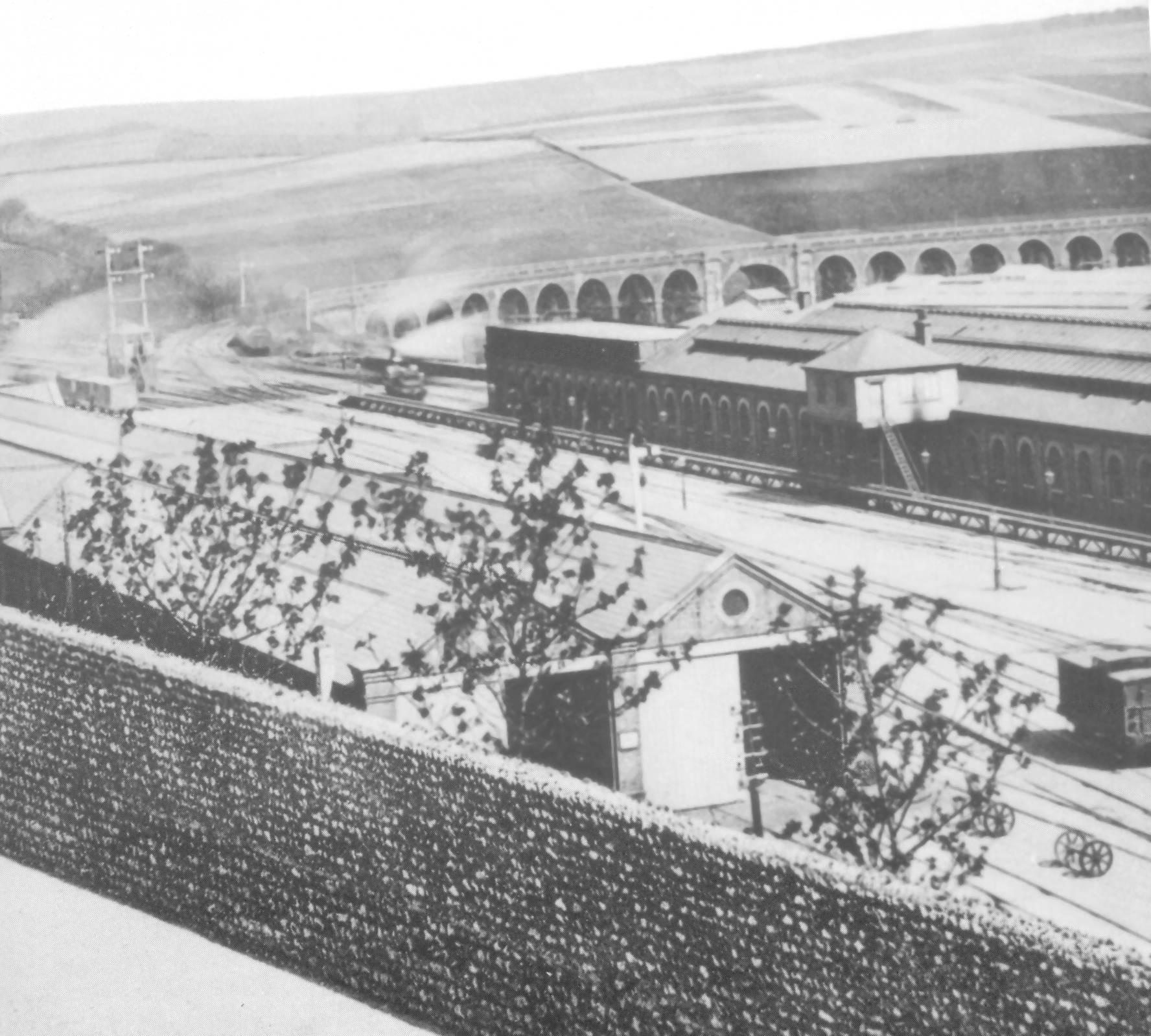 ABOVE: This view of the viaduct across London Road shows the original Works Buildings at the top right of the print, dating from around 1846. Image owned by Brighton History Resource Centre.