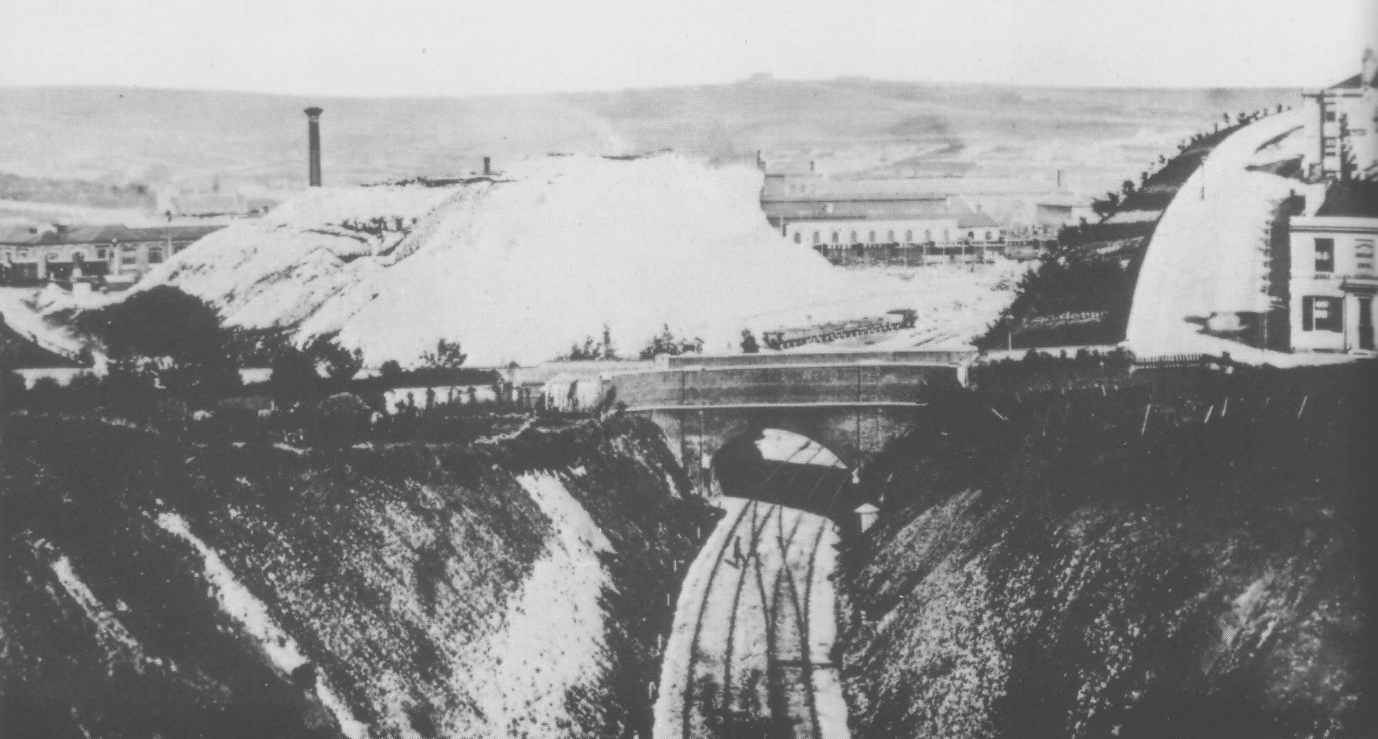 Further machinery was acquired in 1860 & 1861, and in the latter year a new carriage shop was built, but still detached from the main works. In the early days of the works the locomotive and carriage sidings were on the same site. There was a great deal of shunting in the yard and these operations often encroached on the main lines, often delaying departures. Looking for more space on the site, Craven decided to remove a large chalk hill which had been formed from spoil when the plateau for the station and main line were excavated.