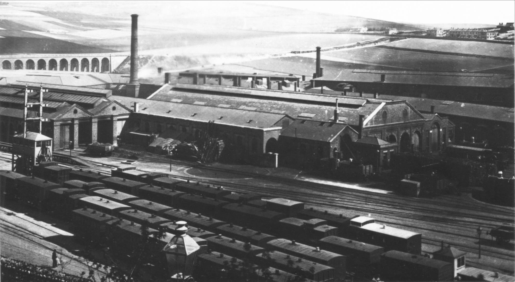 It has been mentioned before that the Brighton Line drew its motive power from a pool of locomotives formed from the grouping of 2 other Railway Companies. In the early days they were maintained and repairs at New Cross in South London. Conditions there were congested, and both the LBSCR and the SER relieved the pressure by building repair shops of their own.